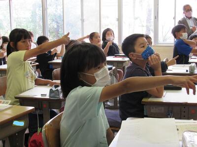 他校の児童を迎え、「幸松っ子」たちが躍動します。