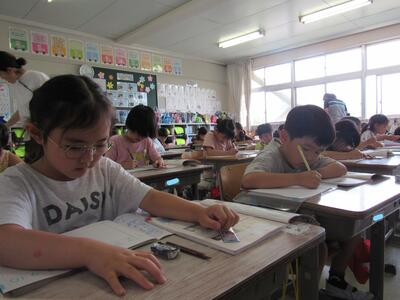 ◆となりの2年生も、図工で「虫さんといっしょに」を描いているよ。
