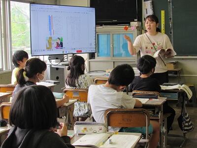 ◆6年生の学級を担当する教育実習生が、社会の授業を行っていますよ。