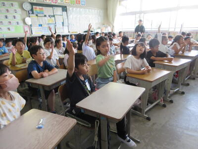 講師の先生のお話を聞き、早寝・早起き・朝ごはん・朝うんちの大切さを学ぶことができました。今後ぜひ実践していってくださいね。講師の先生、大変楽しい授業をありがとうございました。