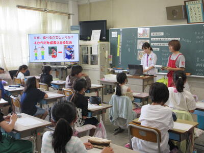 ★養護教諭と栄養士で食と健康に関する授業を行いました。4年生は、健康に成長するためには食が重要であることに気付いていました。給食はもちろんのこと、朝食、夕食もしっかりと食べてほしいです。