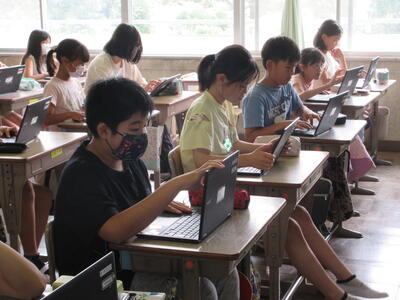 ★国語の時間に物語を学習してきたまとめの感想をタブレットで読み合っていました。友達の感想を読み、その感想をさらにタブレットで打ち込みます。タブレットパソコンを活用することで、個々が集中してじくりと感想交流することができました。