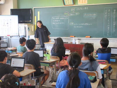★社会では、タブレットを使って調べ学習を行っていました。タブレットが確実に学習ツールになってきています。