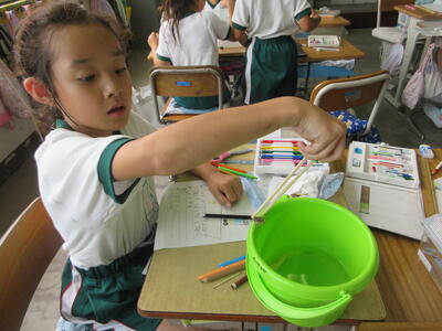 ★教室に戻りざりがにの観察をしました。たくさんは釣れませんでしたがグループでなんとか観察することができました。