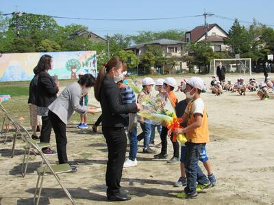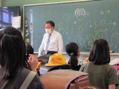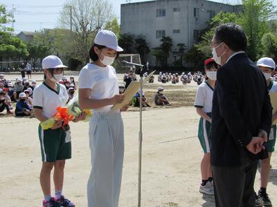子どもたちから、転退職された先生たちへ気持ちを伝えます。