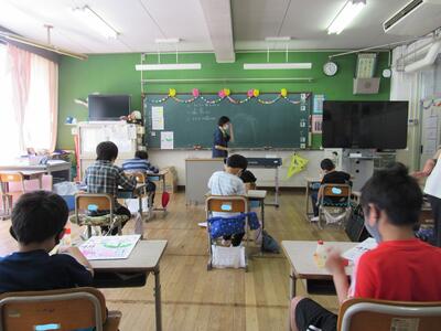 ◆3年生は、算数の授業が始まり、問題をノートにしっかりと書いているところだよ。