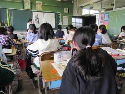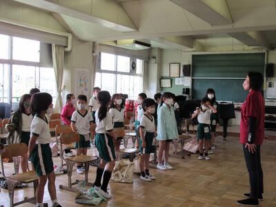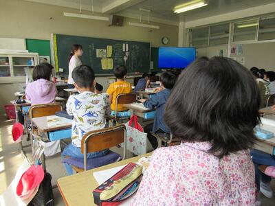 ◆3年生の音楽では、代表児童が出てきて、みんなでリズム打ちをしているよ。