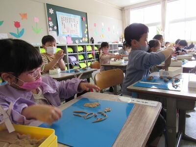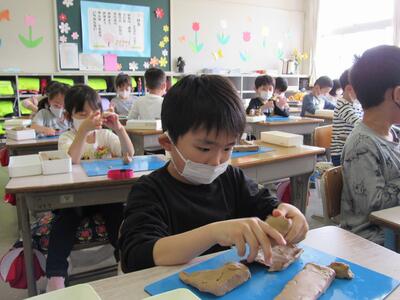 ◆1年生の図工では、ねん土で造形遊びをしているよ。