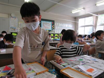 ◆1年生は、初めての図工「すきなものいっぱい」を楽しんでいるよ。