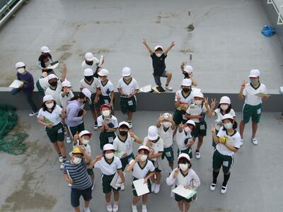 ◆5年生は、屋上から学校の様子をスケッチしに集まっているよ。3年生の社会科かな?