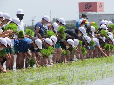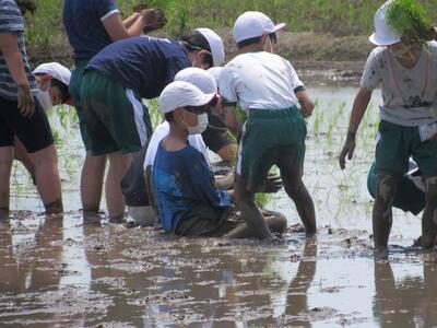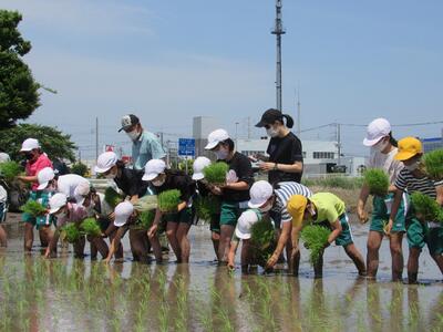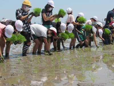 5年生の幸松タイム(総合的な学習の時間)での田植え体験は、その代表ですね。