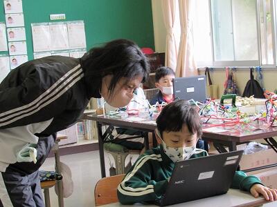 ◆「校長先生、見て見て。豆電球がつきました。」 「本当だ、よかったねえ。」