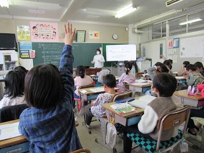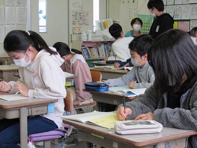 代表の児童がみんなに分かりやすく説明し、それを基に学び合っているね。