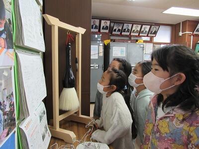 ◆昨日の表彰朝会で紹介した「大きな筆」が校長室に届き、飾ることになりましたよ。