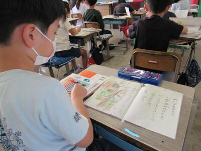 とても丁寧に書き写し、詩から想像することを絵でも描き、詩を味わっているね。