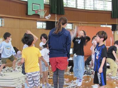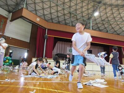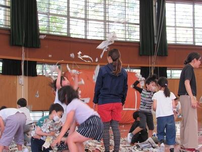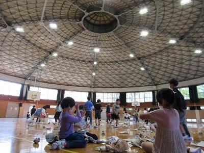 ◆体育館では、2年生全員で造形遊びをしているよ。