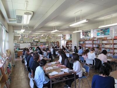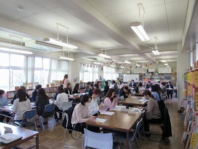 図書室前を通ると、たくさんの保護者の皆さんがいてびっくり!! (※PTA新旧合同理事会)