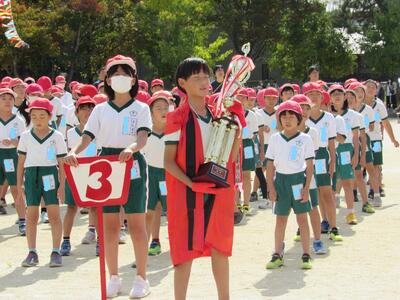 幸松小の運動会史上、一番を争う大接戦を勝利した赤組団長!!