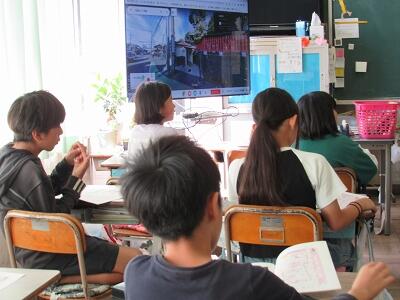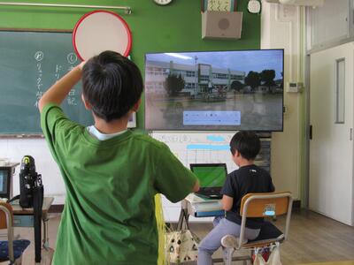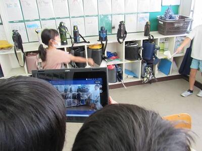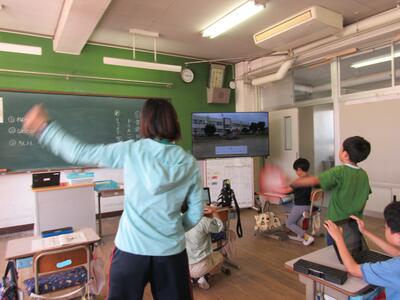 ◆「たんぽぽ・ひまわり学級」では、運動会の表現を大画面を見ながら練習しているよ。