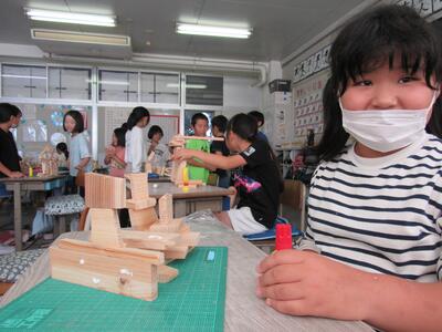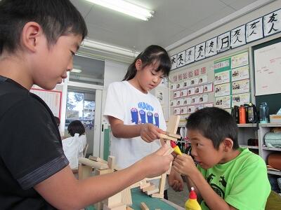 ◆3年生の図工では、木の切れ端を組み合わせて、お城かな? 大きな門かな?