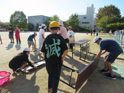 ◆1~5年生が下校後、6年生の前日準備が始まっているよ。