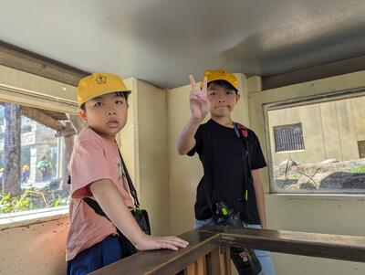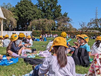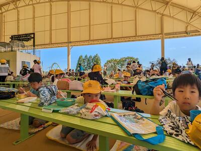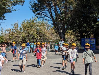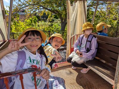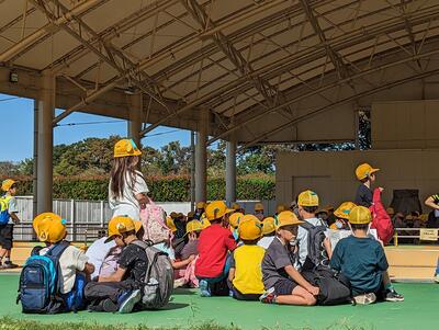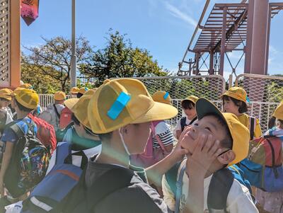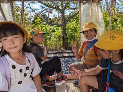 荷物を置いて、この後は、「つくしのきょうだい」グループで園内の見学に出発!