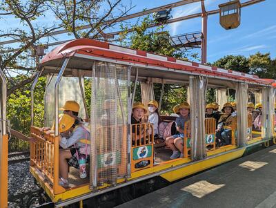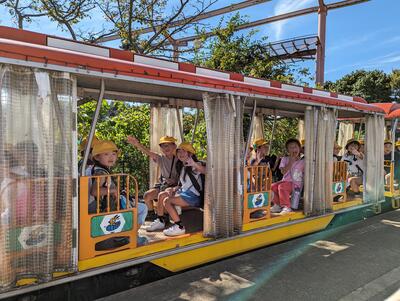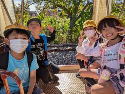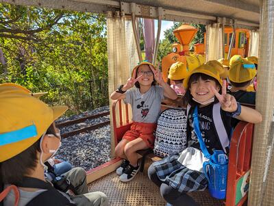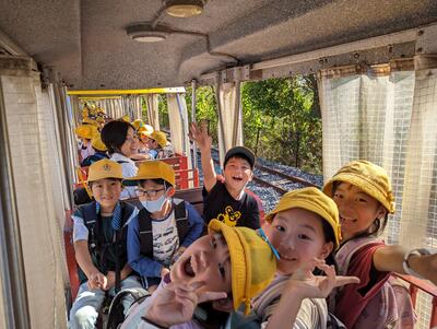 ◆続いて、2年生が汽車に乗って出発ですよ。