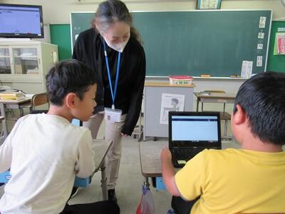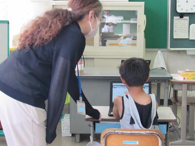 ◆「たんぽぽ・ひまわり学級」では、ICT支援員さんと一緒にPCを楽しんでいるよ。