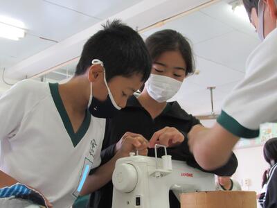 実際にミシンを使って縫うだけではなく、友だちの進め方をお互いに見て学ぶことが大切だね。