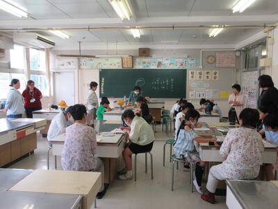 ★地域の方に褒めていただきながらみんな集中して取り組んでいました。最後はグループの代表者の作品を見合っていました。「優秀賞をもらいました。」と満面の笑みで報告しくれました。