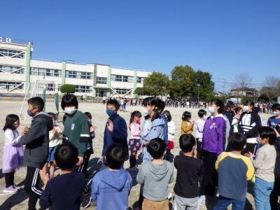 コロナ禍で「6年生を送る会」が実施できなくなってしまったため、校庭でお別れの会を開催することになりました。