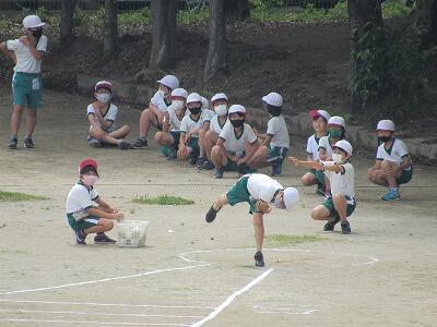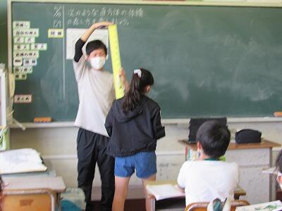 ◆3年生の新体力テスト。今日は、反復横跳びを20秒間行っています。