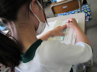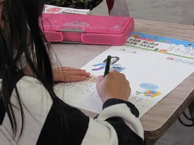◆1年生の国語の時間です。とっても上手にひらがなを書いています。
