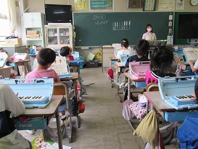 ◆5時間目、校長室まで聞こえてくる楽器を奏でる音色に導かれ、音楽室へ来ました。