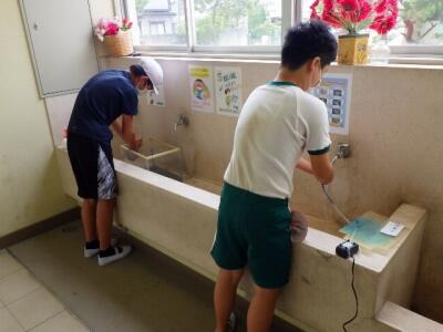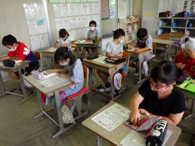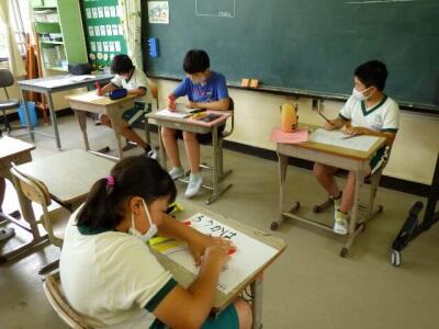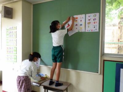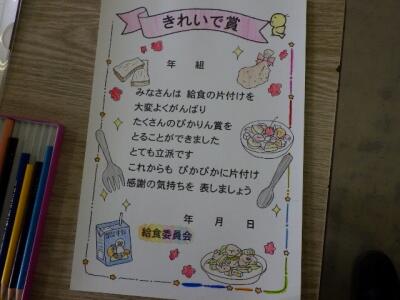 給食委員は、片付けが上手にできたクラスに渡す「きれいで賞」の準備をしました。