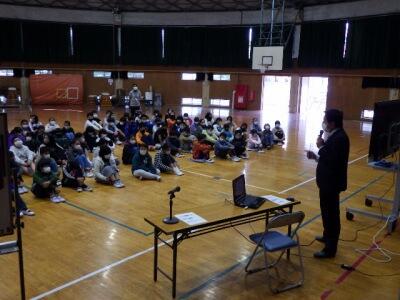 春日部法人会の皆様をお招きし、体育館で租税教室を行いました。