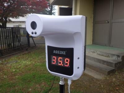 新たに購入した自動検温器で体温チェックをしました。
