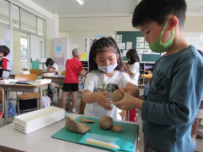 2年生の図工では、ねん土を使って造形遊びをしているよ。