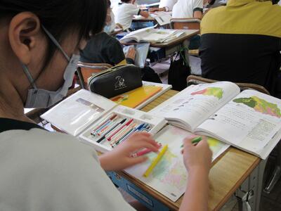 ◆4年生は、白地図作業を通して、埼玉県の土地の様子を学んでいるよ。