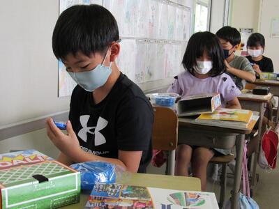 ◆1年生の国語では、自分の好きなものをペアで伝え合っているよ。