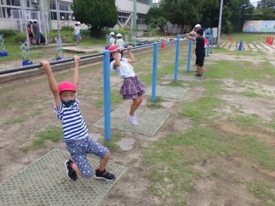 昨日は湖のようになっていた校庭ですが、朝から使えるようになりました。
