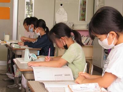 4年生の教室では、机の下にもぐり、だれも話をしていませんね。