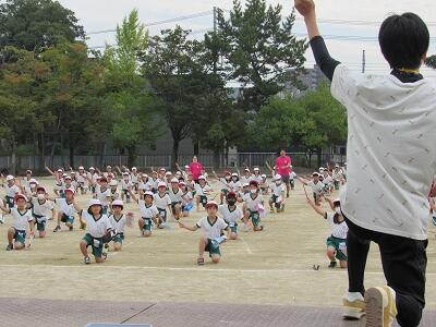 先生の大きなかけ声を聞いて、動きがどんどんとダイナミックになっているよ。