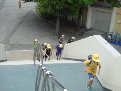 1年生が慣れていないので、いつもよりゆっくりと階段を下りていきます。