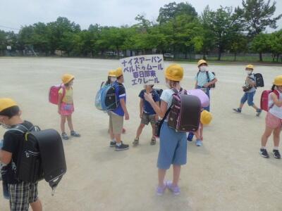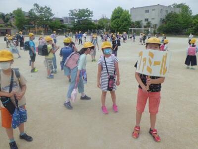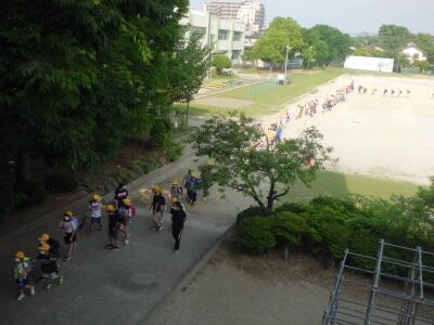 今日も天気がいいので、校庭に集合してから一斉下校をしました。