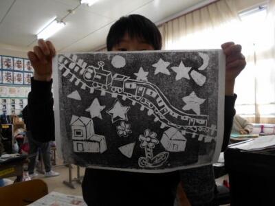 真ん中に幸松小の校舎があり、校庭にはキリンや馬、ダチョウ、うさぎ、熊などが楽しく遊んでいます。