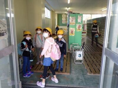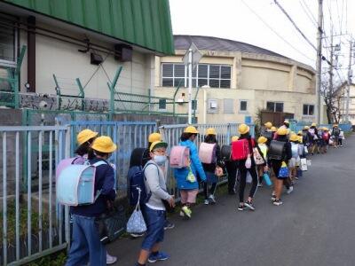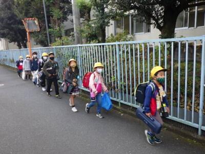 ランドセル以外にも、いろいろな荷物を持って登校します。
