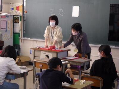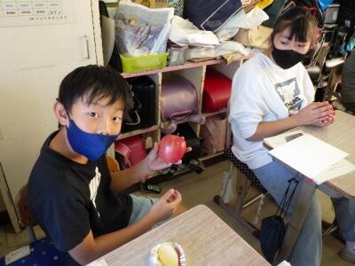 自分の作品について説明し、友だちの作品の感想を述べます。