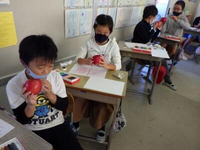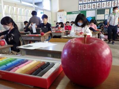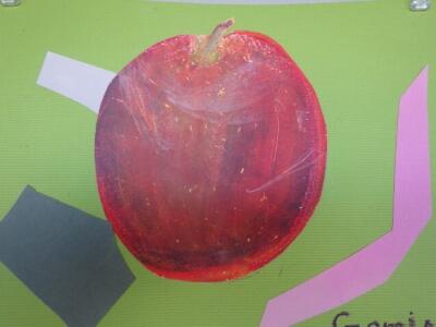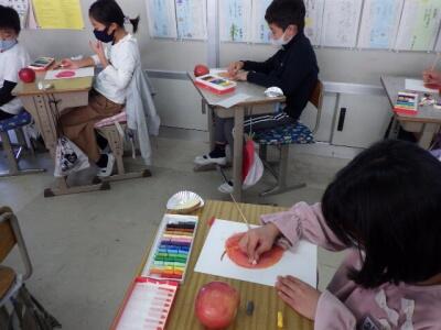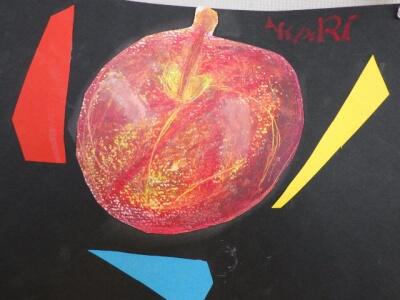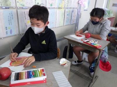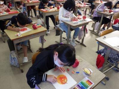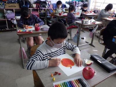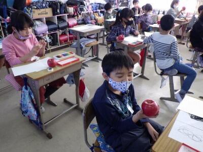 4年生たちが、たった1時間半で、初めて描いたりんごです。