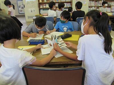 ◆図書室では、4年生が「幸松タイム」で古利根川の自然について探究しています。
